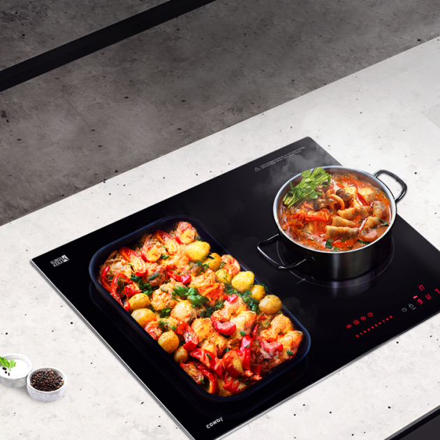 제품특성 3구 모두 강력한 화력 지원, 개별2구를 하나로 연결 가능한 와이드존, 히든 디스플레이